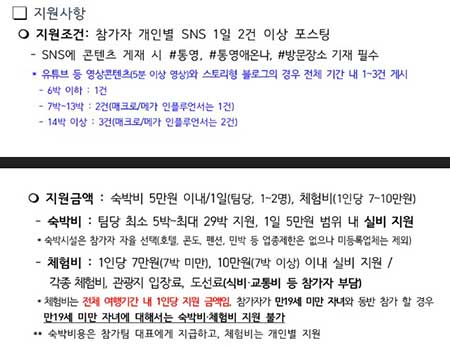 -참가자는 여행 종류 후 15일 내 홍보실적, 카드(현금) 영수증 제출